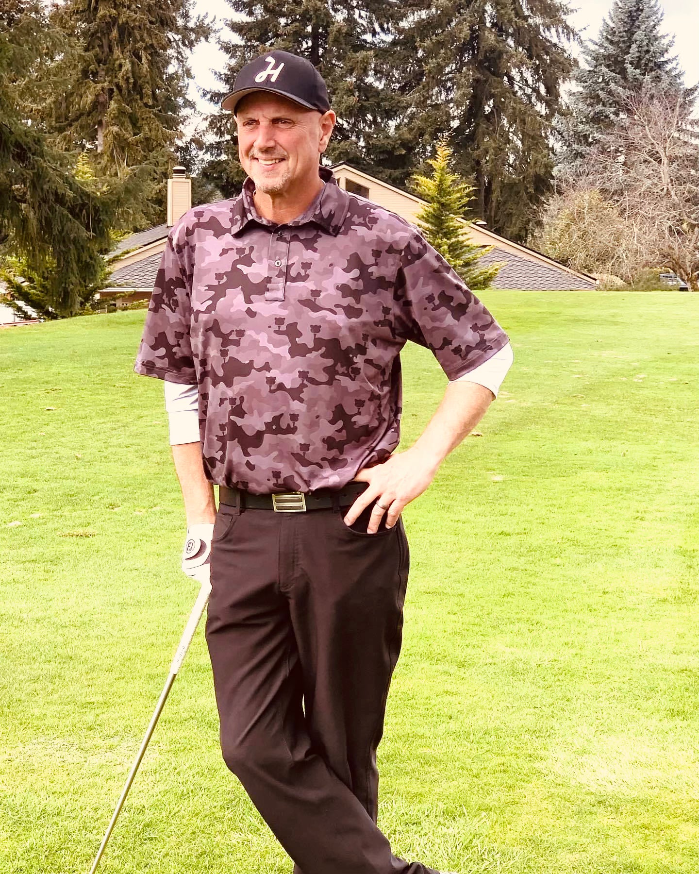 I went with the flat bill hat and the camo shirt and I love them!! The fit great. It’s my go to when hitting the links